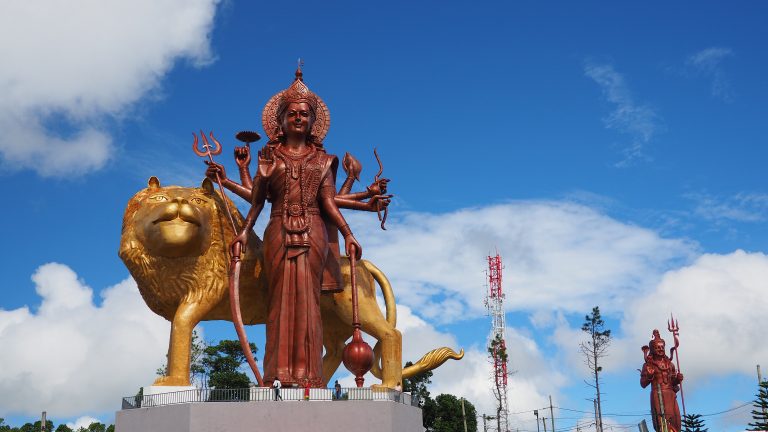 Jadąc z Black River Gorge National Park do Bois Cheri nie sposób nie dostrzec przy drodze kolosalnych pomników hinduistycznych bogów Durgi i Sziwy.