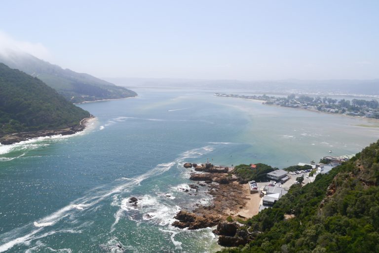 Początkowo trasa nie jest zbyt ciekawa. Od czasu do czasu mijamy zielone winnice. A dalej już tylko wysuszone pola i góry w oddali. Trasa idzie wolno aż trudno uwierzyć w szacunki od Google maps. Po wyjechaniu z aglomeracji Cape Town robi się szybciej. Droga jest jednojezdniowa ale są tu szerokie pobocza i pasy do wyprzedzania pod górkę. Więc lecimy. Za Mossel Bay zaczyna się widokowa bajka. Bujne lasy liściaste na pofalowanych wzgórzach przecina kręta autostrada. Po lewej zatoki oceanu, po prawej zielone góry. Na horyzoncie skaliste wysokie góry małego Karoo. Mijamy piękne Wildereness z jeziorami pośrodku gęstych lasów. Krajobraz kanadyjski tylko temperatura śródziemnomorska i gdzieniegdzie wystają z lasu palmy. Znów ukazuje się bogactwo okolicy. Mijają nas zabytkowe kabriolety z dystyngowanymi ludźmi po 60-tce za kierownicą. O domach nie wspomnę. W tych oklicznościach dojeżdżamy do Knysna a dokładnie do Belvedeire- dzielnicy położonej nad zatoką. Zamieszkujemy tu na osiedlu kolonialnych rezydencji niczym z 18 wiecznego Mississippi. Drzewa,zieleń, woda zatoki, białe domy z zielonymi dachami. Nasze mieszkanko to open space studio z 60 mkw. Wszystko jest mega komfortowe.