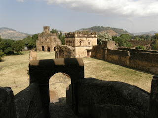Szukamy nadal wejścia do zamku, który ma być otwarty od 8.30. Jesteśmy trochę wcześniej więc czekamy opędzając się od przewodników. Wstęp kosztuje 50 B i obejmuje jednocześnie wejście do łaźni Fasilidas Bath. Zamek w Gonder robi wrażenie ale w żaden sposób nie jest afrykański, wygląda jak typowy szkocki zamek. Cały kompleks zamkowy został zaprojektowany przez włoskiego architekta. Jest otoczony wysokim murem od miasta. Na terenie kompleksu wielu władców budowało swoje zamki od XVII do XVIII wieku. Wszystkie budowle są w tym samym stylu, czyli już wtedy posiadano tu wiedzę, której planiści polskich miast jeszcze nie opanowali. Tylko palmy i blaszane wiaty postawione nieopodal przypominają, że to Afryka a nie Szkocja. Jest bardzo spokojnie i warto się tu pokrzątać bez pośpiechu.