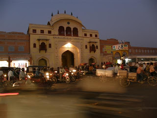 Obok stoi hit Jaipuru – City Palace, który omijamy widząc kolejna dyskryminująca tabliczkę z cenami – locals 25 INR, foreigners – 300 INR. Tak naprawdę nie mamy ochoty na zwiedzanie pałacu nawet jeśli stanowi główną atrakcję miasta. Po powrocie do hotelu i chwili odpoczynku wyruszamy na czterokilometrowy Walking Tour po starym mieście. Trasa wprost z przewodnika LP rozpoczyna się i kończy przy Ajmer Gate i jest na prawdę godna polecenia. Tak skondensowanego i zatłoczonego kawałka świata jeszcze nie widzieliśmy. W tym miejscu najintensywniej można doświadczyć wszystkich kolorów i zapachów Indii o których wszyscy się rozpisują.