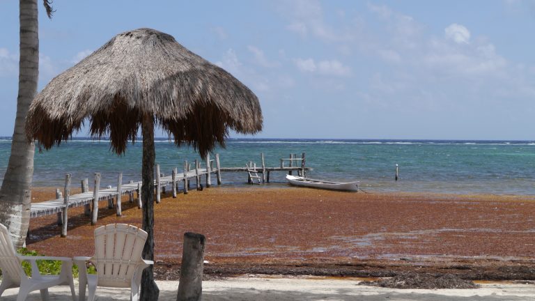 Z Xpujil do Mahahual pokonaliśmy 200 km w około 2,5h z tym, że ostatnie 50 km to jedna długa prosta droga, na której można testować maksymalne prędkości. Na miejscu mocno się rozczarowaliśmy. Po pierwsze ceny z kosmosu. Za surowe bungalowy 2x2m 800 pesos bez klimy bez wiatraka bez łazienki. Hotele od 1300 pesos. Klimat małej miejscowości może był ale w połączeniu z cenami aspirującymi do Cancun nie był dla nas do zaakceptowania. Po drugie niemal brak plaży. Wąski pasek piasku jeśli był to w całości pokryty rudymi glonami, które gęsto pokrywały całe nabrzeże. Po trzecie okropny smród siarkowy niczym z szamba, prawdopodobnie spowodowany gnijącymi glonami, których nikt nie sprzątał. Nie mogliśmy uwierzyć, że hotele przy tym smrodzie oferują kurortowe ceny.Nieopodal znajduje się nowsza cześć miasteczka gdzie zawijają wycieczkowce. Być może tam warunki były lepsze ale nie chcieliśmy juz sprawdzać i szybko się stamtąd zabraliśmy do Tulum oddalonego o kolejne 200 km. Bardzo nam było przy tym szkoda Franeczka, któremu zamiast brykania po plaży zafundowaliśmy tym samym kolejne 2h w foteliku samochodowym. Ale nie było wyjścia. Nasza eskapada do Mahahual była spowodowana oczekiwaniem niższych cen niż w Tulum zatem teraz byliśmy już przygotowani na pełną odsłonę: Welcome to Riviera Maya- prepare your credit card!