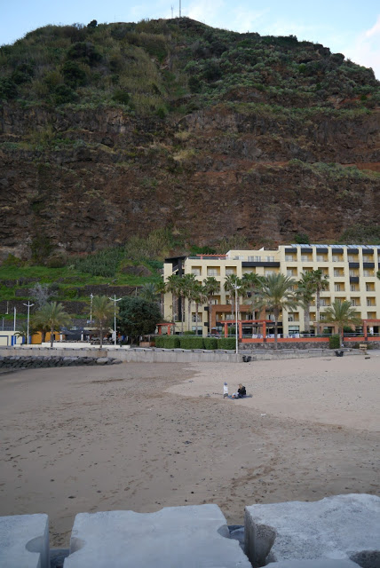 Końcówka dnia to atrakcje dla synka. A nie ma nic lepszego niż piaszczysta plaża nawet jeśli jest 14 stopni, wieje i robi się ciemno (w zasadzie w innych okolicznościach trudno nas spotkać na plaży..) Kolejną piaszczystą odnajdujemy w Calheta – miejscowości stolicy regionu zachodniego. Choć nie badamy tematu dokładnie to przejeżdżając jak okiem sięgnąć nic nam wzroku nie przykuło. Oprócz wspomnianej „pięknej”plaży otoczonej betonem oczywiście 🙂