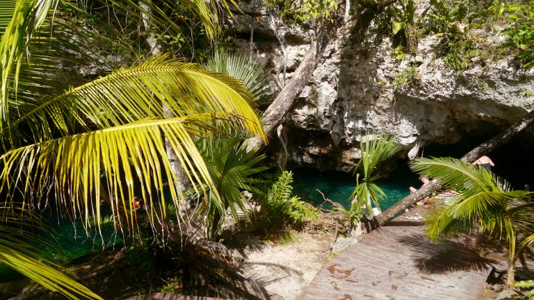 Przed wyjazdem z Tulum podjechaliśmy do oddalonej o 3 km w kierunku wschodnim Gran Cenoty. Wyprawa przebiegała w takim tempie, że flagowy „produkt” Jukatanu jakim są cenoty jakoś nam umknął. W pierwotnych założeniach chcieliśmy ponurkować ze sprzętem ale okazało się, że do tego trzeba mieć uprawnienia i nie ma komercyjnych zejść do wodnych jaskiń z instruktorem, jak to ma miejsce np na rafach w Egipcie.