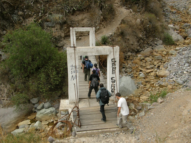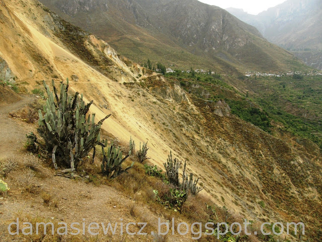Jeszcze tylko kilkanaście minut drogi i wysiadamy z busa. 2 może 3 km przed miejscowością Cobanaconde rozpoczynamy trekking. Nasza przewodniczka tłumaczy pokrótce trasę i ruszamy. Ekipa może i mało gadatliwa lecz przynajmniej trekkingowo zwarta i zdyscyplinowana. Nikt się nie ociąga a Francuzi nie mają nawet plecaków podręcznych i wyrywają przodem.