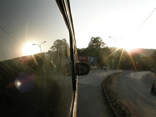 Żegnamy hotel Kriszna Niwas i wyruszamy z riksiarzem który przez cały pobyt nas woził i czatował na nas przy hotelu. Na przystanku okazuje się, że jedzie z nami kilka ekip z Europy w tym 3 –osobowa grupa Maćka z Poznania, który w ramach internship włóczy się po Indiach z kumplami – Niemcem i Brazylijczykiem. Autobus spóźnia się o godzinę. Miejsca mamy na samym tyle autobusu i w górnym rzędzie. Sleeper nie wygląda źle ale w drodze rzuca nami okropnie i nie da się spać. Nie wyciągnęliśmy nauczki po trasie Pakse – Vientianne w Laosie rok wcześniej – nigdy nie brać miejsc na końcu autobusu z miejscami leżącymi! Kompletnie o tym zapomnieliśmy. Na początku umilamy sobie droge rozmową z Maćkiem, który ma miejsce naprzeciwko nas. Mamy tez dwóch śmiesznych młodych hindusów po sąsiedzku, którzy z wielkim zaciekawieniem przysłuchują się naszej rozmowie. Jada do Bombaju, jak twierdzą robia interesy na handlu biżuterią. Otwarte okno, My back pages Dylana na uszach, ciepły wiatr we włosach na zakrętach górskich i ostatnie promienie słońca napawają energią jednak nie na długo.