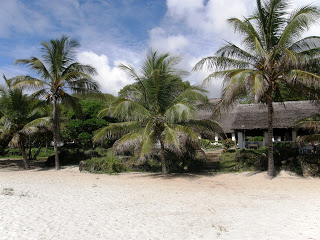 Na plaży jest niewiele ludzi i jest bezpiecznie, wszelkie przestrogi przed samotnymi spacerami są robione tylko po to by przewodnicy mogli dorobić. Tumani ma nas zaprowadzić do Diani Beach i do bankomatu. Chociaż jest uroczo to godzinna piesza wędrówka po plaży w takim upale męczy więc wracamy matatu. W nasyzm hotelu nadal panują pustki, kilka parek z Włoch i to wszystko. W czasach świetności przybywało tu mnóstwo włoskich turystów, dziś przyjeżdżają nieliczni.