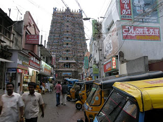 Jest około 15 wiec robimy rekonesans po mieście. Wiemy że do celu naszej podróży do Madurai – świątyni Sri Meenakshi – dziś nie ma sensu się wybierać. Po kilku minutach spaceru po tym tamilskim mieście nagle nie wiadomo skąd znajdujemy się już w sklepie z hinduskimi dewocjonaliami…
