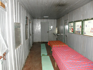 Obóz składał się z 3 budynków z czego 2 zajmowane były przez obsługę a 1 był przeznaczony dla odwiedzających. Przypominał barak. W środku było jedno podłużne  pomieszczenie jadalne ze stołami i ławkami, na końcu którego znajdowała się umywalka i wc. Równolegle do wejścia było kilka pokoi wieloosobowych, w których znajdowały się dwupiętrowe łóżka z materacami. Zajęliśmy cały pokój we dwóch więc było sporo miejsca na rozłożenie gratów i przepakowywanie. Było również sporo czasu na spanie, odpoczynek i kurację. Jednak przeziębienie postępowało nadal, co gorsza doszła do tego bezsenność.